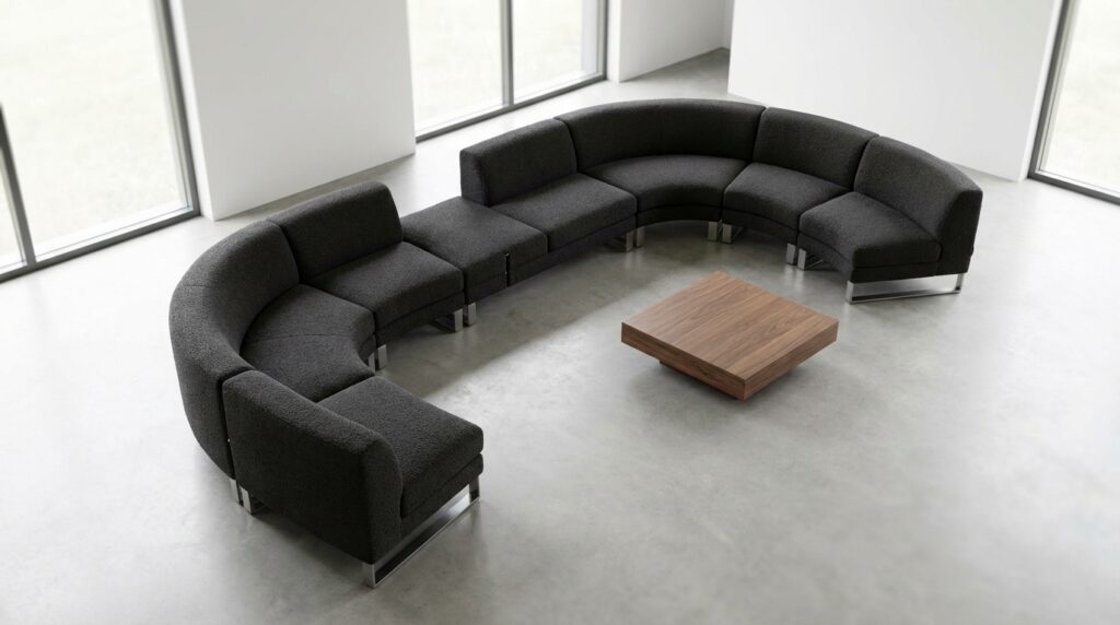 Specifying curved modular furniture requires attention to spatial parameters that are often ignored in rectangular systems. Curved sectionals need 15-20% more floor area than equivalent angular configurations to avoid awkward gaps. Room geometries influence effectiveness: curved furniture performs optimally in spaces with at least one dimension exceeding 4200mm, below which radius constraints compromise seating capacity.